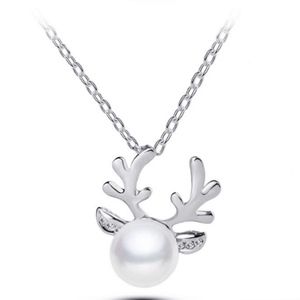 White Pearl & Antlers Silver Necklace
