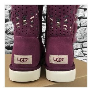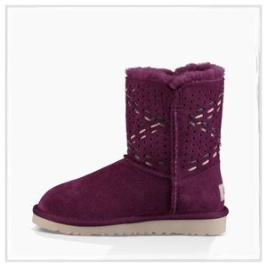 ✨UGG® Bailey Button II Purple Passion Tehuano Suede Boots✨ Suede Uppers With Perforated Shaft And Woven Leather Strips✨Slip on with looped metal button✨ UGGpure® wool vamp and heel counter lining✨UGGpure® wool Insole✨Treadlite by UGG® outsole✨NEW In Original Box✨Size 7✨