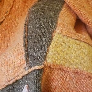 Rare, very well made knit sweater with multiple panels, orange, tan, peach, brown sweater all woven together. Amazing details. The size says medium but I am listing it as a small. Model for color reference only.