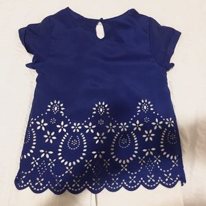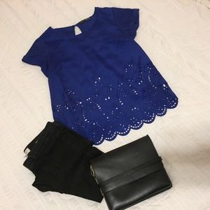 Blue Scallop Edge Top with laser cut detail in size US 6/UK 10. Brand: Atmosphere. BARELY WORN with no evidence of wear at all.