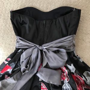 Gorgeous black & red floral satin strapless dress with a silver satin sash by Ruby Rox in juniors size 1. Worn only once for a special occasion this dress is in excellent preloved condition. The black bodice is softly padded & there is a built in slip with black tulle at the bottom hem to give the skirt extra body. Your girl will look stunning at the coming holiday parties! Thanks for shopping my closet!💕