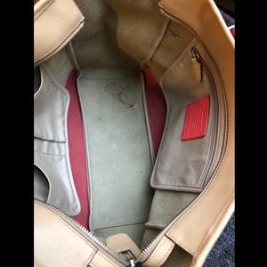 Great Coach Tote! Medium size with coral & tan color! Zip top closure! 2 pockets & 1 zip pocket in the inside! Good condition! (Some normal wear- shown in pictures but still in great condition!) πSize Medium, 13 3/4β x 10 3/4β x 5 1/2β. Handles 8 1/2β drop. Brand Coach. π Make an offer! Bundle to save! (Comes with Duster bag)
