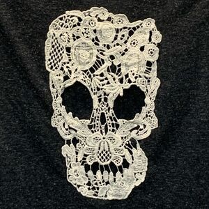 $5 ADD ON ITEM/Collard button up front tie knit skull detail