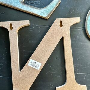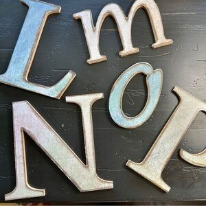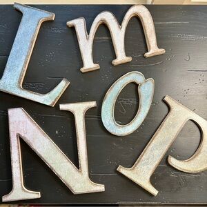 5-ALPHABET LETTERS. PERFECT FOR KIDS ROOM OR CLASSROOM. GREY & BLUEGREEN COLORS. 3-8”, 1-6”, 1-4 3/4”
