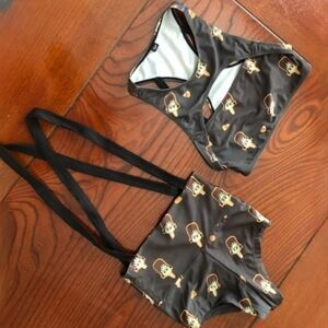 This 5&Adime two-piece bikini set features a whimsical ice cream print, harness-style straps, and a soft stretch fit that moves with you from beach to dance floor.