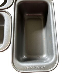 5 Baker’s Secret Petite Loaf Pans 5 3/4” x 3 1/8” x 2 1/8”. Have a little wear, scrapes, etc. See photos.