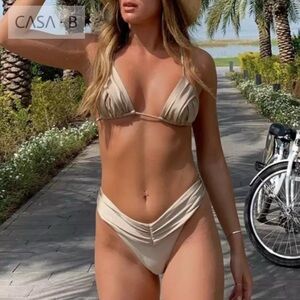 5🌟CASA B | Athena Ruched Golden Triangle Bikini Set🏆