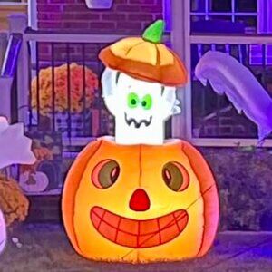 * Perfect for Any Outdoor Space: Great for front yards, gardens, or porches, this Halloween Inflatable fits in perfectly in any outdoor setting. Spice up your Halloween decorations with this animated ghost and pumpkin display and make your yard the star of the neighborhood