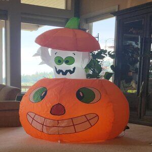 5FT 0range Pumpkin Ghost Halloween Blow Up Inflatable Decoration with LED Light