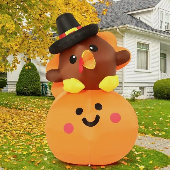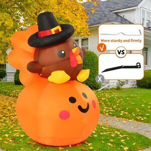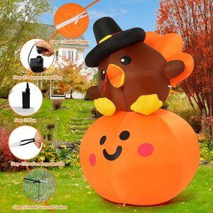 5FT Inflatables Turkey Baby on Pumpkin Built-in LEDs Blow Up Yard Decoration