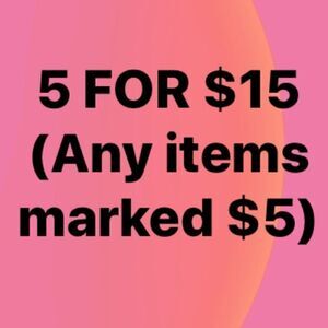 5 For $15 or 5 for $25 SALE