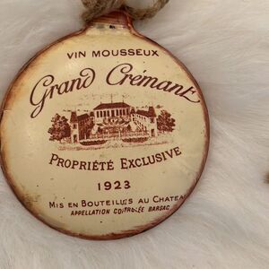5 French Christmas Ornaments. Double-sided with different designs on the back of each ornament. See photos for measurements.
