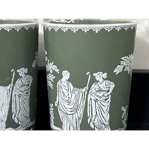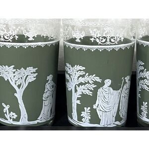 5 Hellenic Wedgwood Green Small Gold Rimmed Mid Century Jasperware Glasses