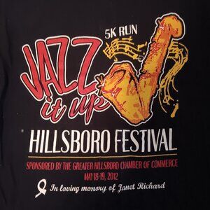 8. Hillsboro Festival 5K Hillsboro, MO Black, writing on back