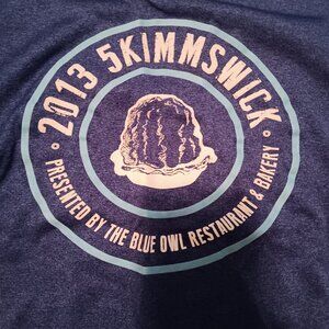 16. Kimmswick 5K Kimmswick, MO Dark Blue, moisture wicking, writing on back