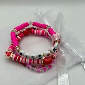 5PC Kiss Me Pink Valentine Bracelet Stack