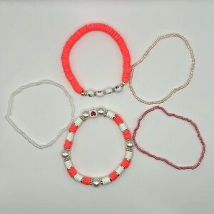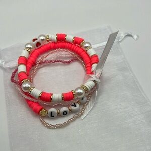 5PC Pink Love Letter Faux Pearl Bracelet Stack