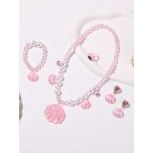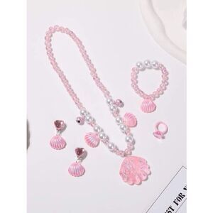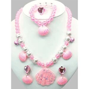 ❤️ Faux Shell Pearl Gemstone Jewelry Set (1 Necklace, 1 Bracelet, 2 Ear clips, 1 Knuckle Midi Ring)