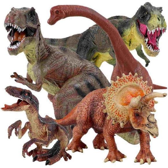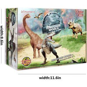 Winsenpro 5PCS Jumbo Dinosaur Set.13" Realistic Looking Dinosaur Toy Set for Party Gift,boys and girls' birthday gift.Packet:2*Tyrannosaurus Rex,1*Brachiosaurus,1*Triceratops,1*Velociraptor.recommended age:3 years and up.