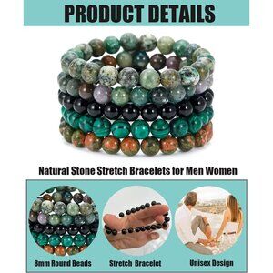 Semi-precious Gemstone Bracelet: 5pcs 8mm natural stone beaded bracelets for women men.Different stone beads bracelets give you different wearing choices.You will get Matte beads bracelets,Lava rock beads bracelet,Tiger eye beads bracelets,Amazonite beads bracelet,red agate beads bracelets and so on.Delicate gemstones bracelet will go well with your any outfits,make you be more charming and elegant