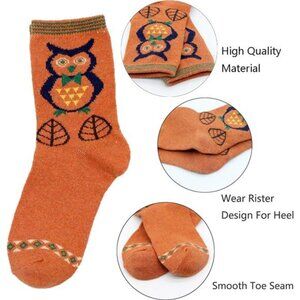 *Womens Wool Winter Athletic Crew Warm Hiking Soft Thick Socks Animal Owl Design Patterned Cute Socks