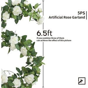 5Pcs 32.5FT White Flower Rose Garland Fake Vines Faux Artificial Floral Garland