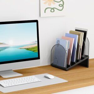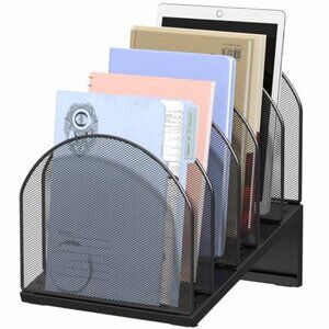 5-Section Metal Mesh Desk File Organizer for Documents & Office Papers