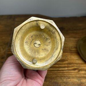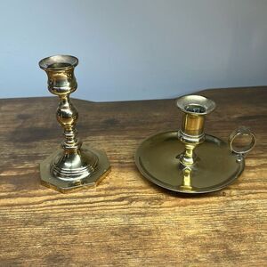5” Shiny Brass Taper Candlestick Holder and Chamberstick with Finger Loop set of 2. Neither Piece has any markings on them.