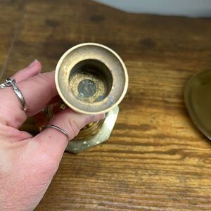 5” Shiny Brass Taper Candlestick Holder and Chamberstick with Finger Loop set 2