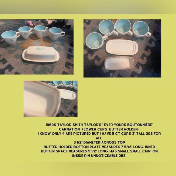 5 Vintage Taylor Smith Tea Cups and butter dish