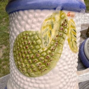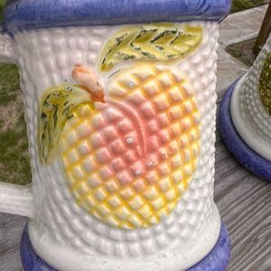 5 White Ceramic Mugs With Fruit Design Made In Mexico With Fruit Design Vintage