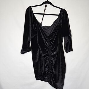 5X 28W Torrid Black Stretch Velvet Shirred Front Off Shoulder Top Holiday Naught