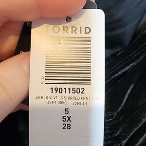 5X 28W Torrid Black Stretch Velvet Shirred Front Off Shoulder Top Holiday Naughty Sexy Black New Years Goth Stretch. Measurements for reference only approximately neck to hem 20" under arm to under arm 28" sleeve inseam 15" wt 14oz