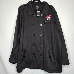 5X 28W Torrid Black Minnie Mouse Pea Coat Disney Fleece Knit Embroidered Jacket button up long sleeve. Heavy knit. Embroidered wrist and chest. NWT Torrid. Measurements for reference only approximately shoulder to hem 31" under arm to under arm 30" sleeve inseam 19" Wt 2lb 10oz 8×15×5