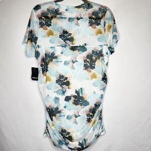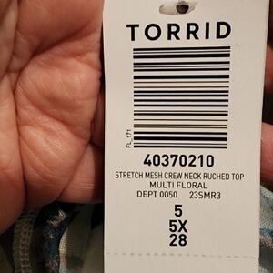 5X 28W Torrid Blue Floral Stretch Mesh Crew Neck Ruched Top Sweetheart blue sheer lining y2k 90s Watercolor. NWT Torrid. Measurements for reference only approximately neck to hem 26" under arm to under arm 24" wt 11oz
