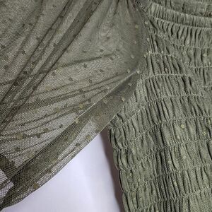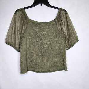 5X 28W Torrid Green Dot Mesh Square Neck Crop Top Smocked Puff Sleeve Garden fairy festival summer date. NWT Torrid. Measurements for reference only approximately neck to hem 17" under arm to under arm 23" sleeve inseam 6" wt 9oz