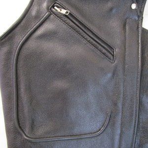 Unisex black leather chaps from First Leather Apparel Classic Leather Gear.