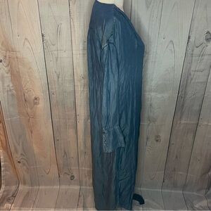 This dress is in great condition with minimal signs of wear. It is 100% lyocell and machine washable. It has a deep v-neck with long sleeves. It has a double slit and also a front slit. This dress looks great with boots for any casual or formal occasion. Great looking dress.