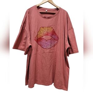 Additional Information: Graphic Tee, 100% Cotton, Vintage, Coral, Kiss Lips, Leopard, Leopard Print, Animal Print, Casual, Soft, Comfy, Cozy, Pajama Shirt, T-Shirt, Vintage, EUC, Oversized, Boxy, Chunky