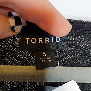 5X 28W Torrid Black Lace Strappy Bodysuit Snap Faux Wrap V Neck Sheer Party Mesh surplice strappy deep v neck lace overlay. NWT Torrid. Measurements for reference only approximately shoulder to hem 30" under arm to under arm 28" wt 11oz
