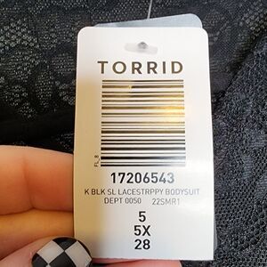 5X 28W Torrid Black Lace Strappy Bodysuit Snap Faux Wrap V Neck Sheer Party Mesh surplice strappy deep v neck lace overlay. NWT Torrid. Measurements for reference only approximately shoulder to hem 30" under arm to under arm 28" wt 11oz