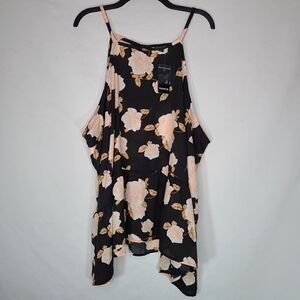 5X 28W Pink Rose Drop Waist Cami Hi-low Hem Flowy, keyhole back, high neck, fixed straps, Sleeveless, shirred drop waist, Georgette. NWT Torrid. Measurements for reference only approximately center neck to hem 22.5 under arm to under arm 30" strap length 9" arm opening 13" weight 7oz