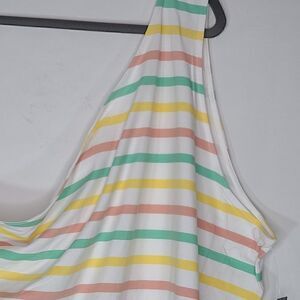 5X 28W Torrid Foxy One Shoulder Tank Pastel Stripe. Fitted, Sleeveless, multi Stripe. NWT. Flawed, 2 small spots pictured. Measurements for reference only strap to hem 31" under arm to under arm 26" strap width 2.5" weight 8oz
