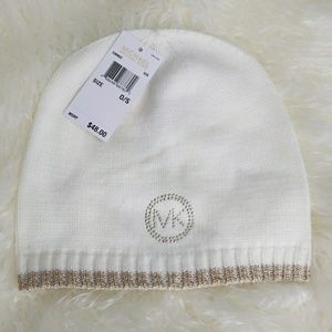 New with tags Michael KORS BEANIE with gold studded logo and gold trim Colors: cream and gold