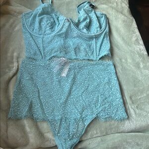 Brand new with tags Victoria's Secret set. Body by Victoria's Secret front close bralette size xs that does not have an underwire but does have removable padding and a light mesh lining and adjustable shoulder straps. The underwear are size xsmall and are crochet lace shortie style. Comes from a smoke free home. If you have any questions or need more pictures please ask!
