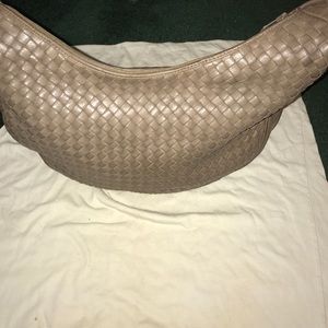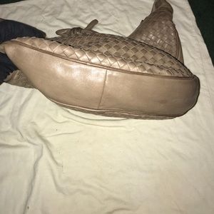 Butter soft taupe woven genuine leather bag. 15’ knotted strap. Zip closure. Zip pocket inside clean interior. Good condition & roomy. Rembrandt of Bottega Veneta