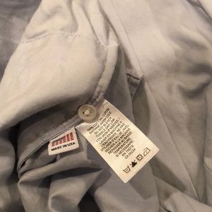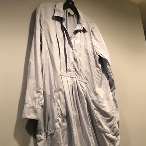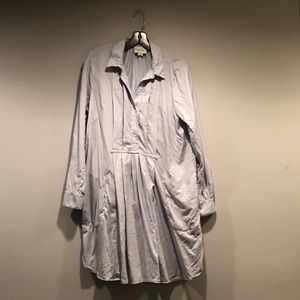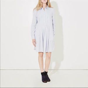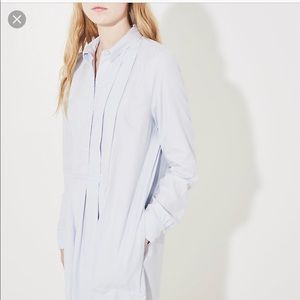 EUC. Worn twice. Tuxedo style shirt dress made of combed cotton with pleated detail on front, button cuff sleeves, and pockets. Shirt tail hem. Incredibly soft fabric in the loveliest pale blue. Perfect year round dress. Additional photos to follow. Sold out online and in stores. Medium, but fits like a small. Made in USA. May keep this one so price is firm. Similar style seen on fashion darling Olivia Palermo