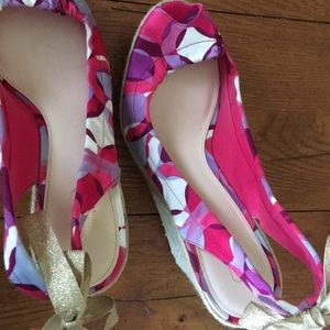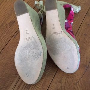 Adorable little to high go me love them worn a couple times still clean no box 4.5 heel front is 1” so cute great with jeans