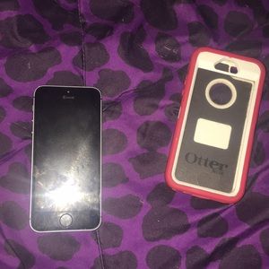 Iphone 5s, otterbox case, and 2 screen protectors
