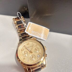 Worn only a couple of times. This is an authentic Mkors leather bag with gold chain. Bag is spotless on the inside. Only has a small ink mark on top and a small scuff on the bottom on the outside. It comes with dust bag.